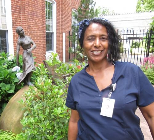 Residing at home with her daughter due to her illness, a third patient becomes short of breath easily, restricting her movement. On a beautiful March day, the sun shines brightly and temperatures are in the mid-’50s, but our patient is unable to get outside. Her volunteer decides to bring the outdoors in and helps her plant a flower from the comfort of her armchair.