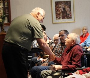 The event concluded with personalized recognition of veterans living at Homeland Center. Each veteran received a certificate and blanket made patriotic and with military-specific colors.