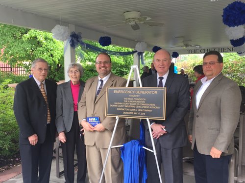 A steady drizzle on the heels of severe thunderstorms earlier in the week was a fitting backdrop as Homeland Center unveiled its new $700,000 emergency generator that will enhance the safety its 145 residents on May 17, 2018. “We realized